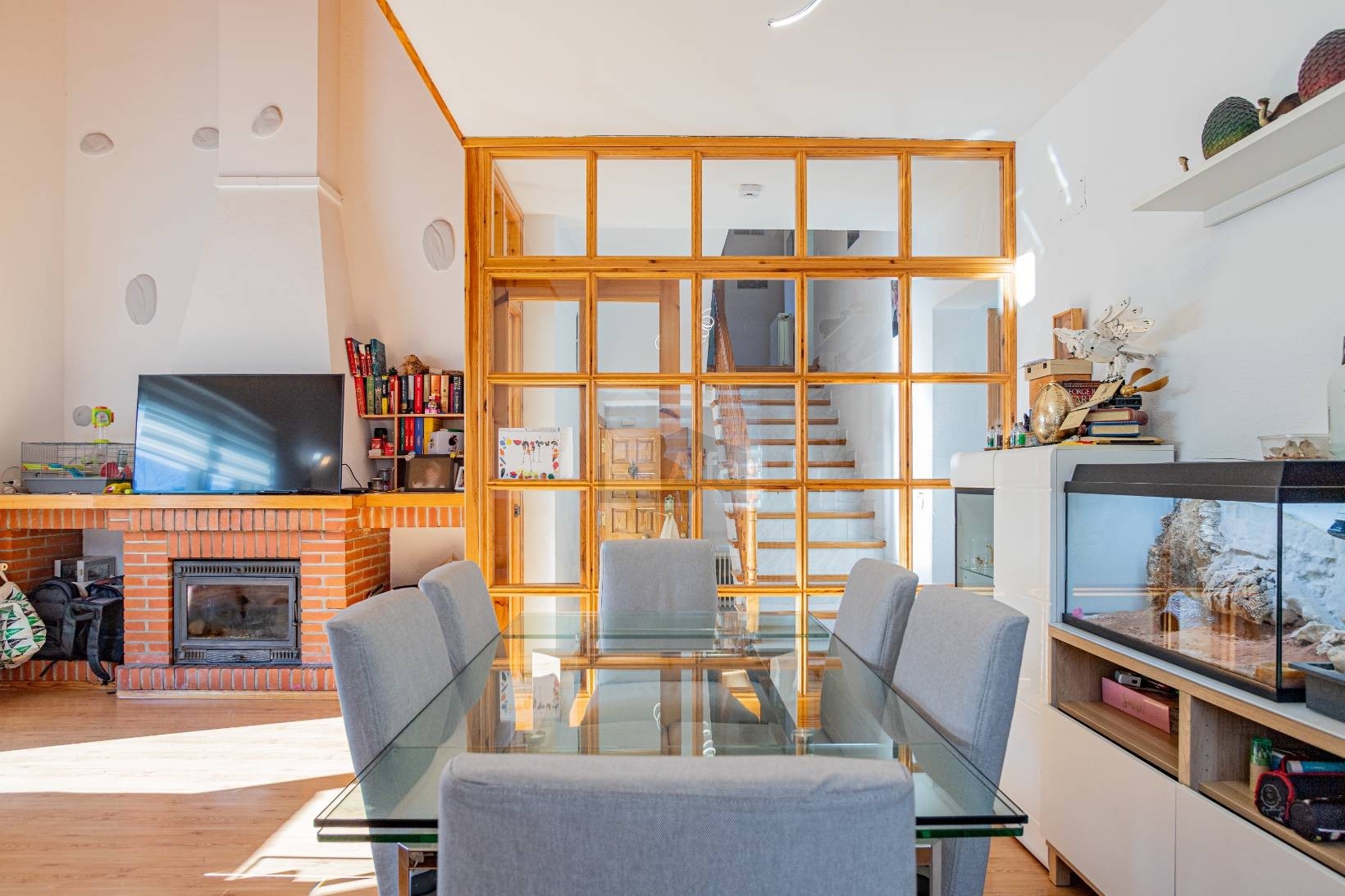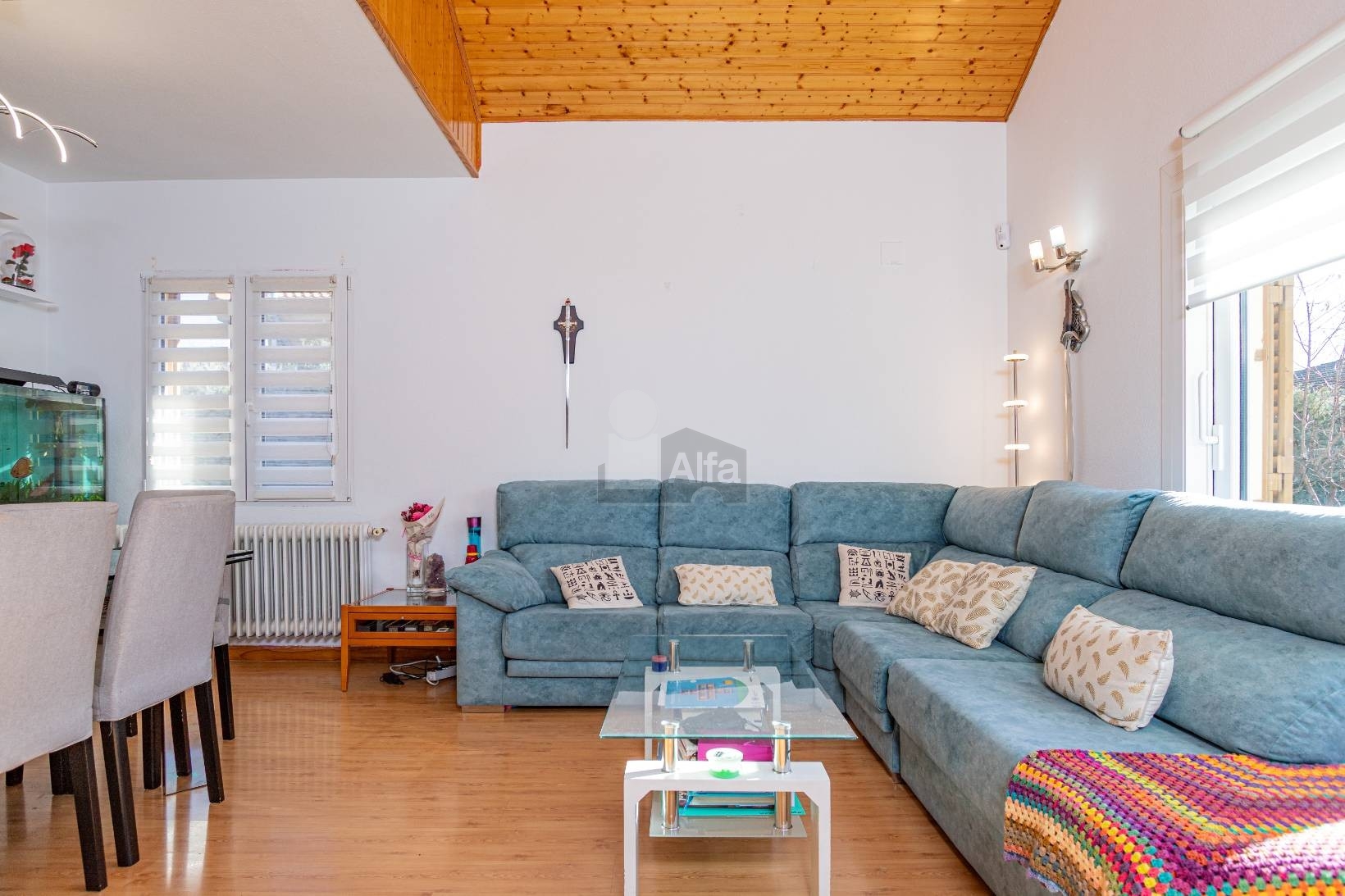 Suelos cerámicos en toda la casa, carpintería exterior de aluminio con doble cristal climalit,. Calefacción de aerotermia, con placas solares que nos proporciona un gran ahorro energético.
