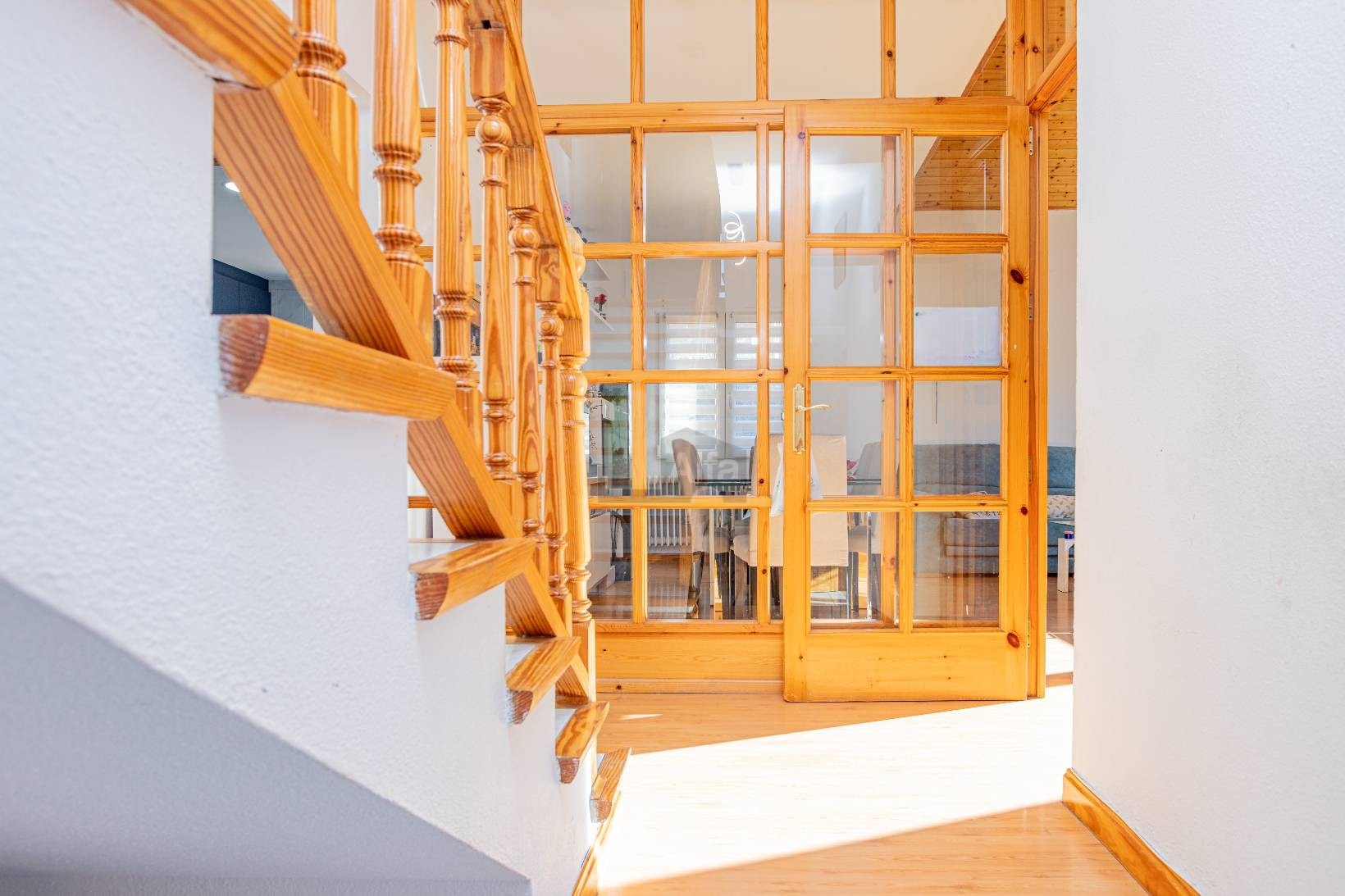 Subimos a la primera planta nos encontramos con un amplio recibidor que nos da acceso a cuatro dormitorios, amplios y con armarios empotrados y un baño completo, y una terraza luminosa y cerrada para pasar buenos momentos, subimos a la planta superior y tenemos dos habitaciones amplias y cómodas, total tenemos 7 dormitorios y dos baños completos.